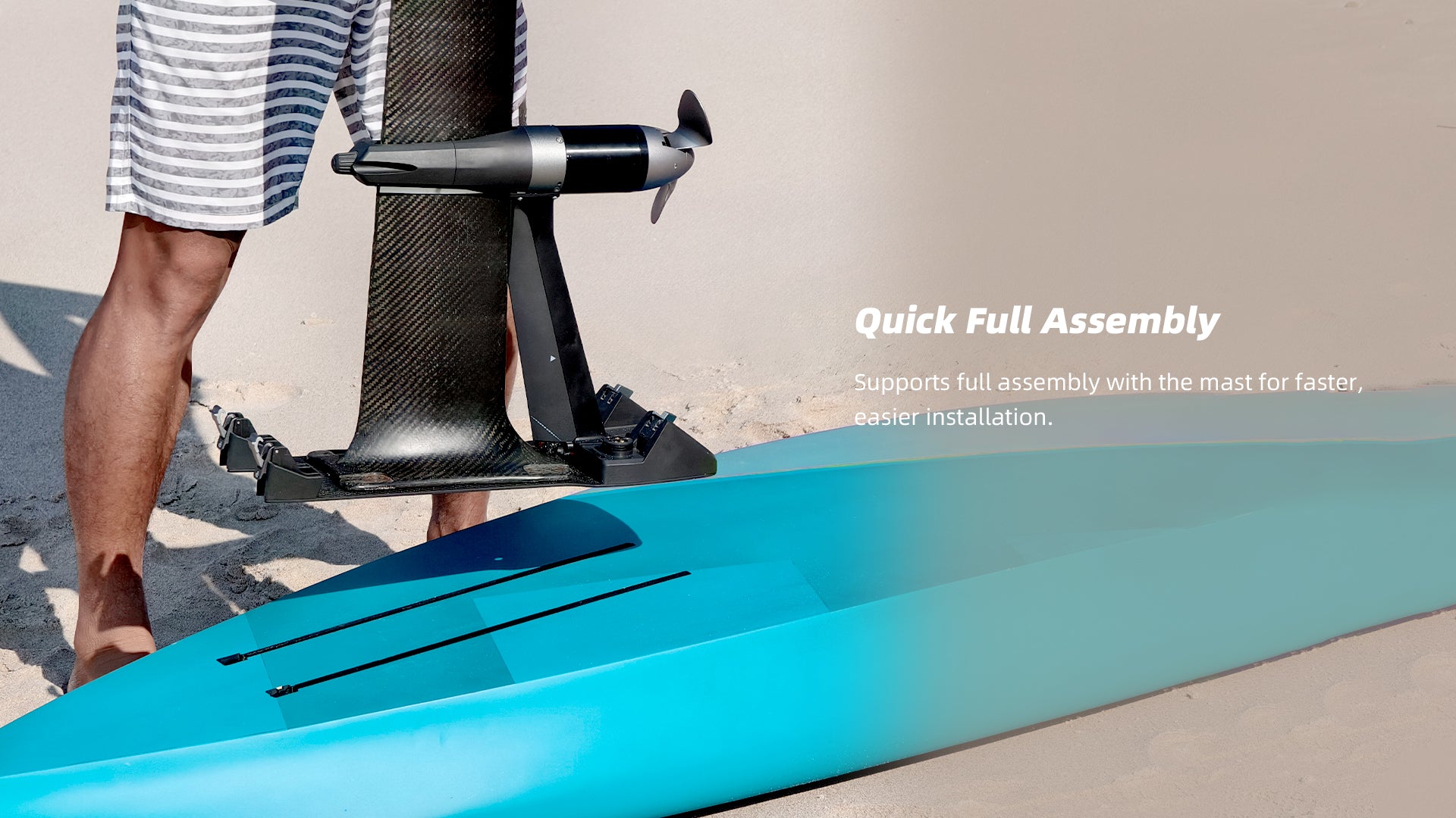 Le Foil Boost se distingue radicalement de la concurrence par son architecture technique intelligente. Contrairement aux systèmes habituels qui ajoutent une épaisseur sous la planche, Waboo utilise une platine en carbone ultra-fine de 3 millimètres. Ton mât vient se fixer directement par-dessus, ce qui garantit une connexion directe et une rigidité exemplaire de ton foil. Par conséquent, tu ne perds pas de longueur de mât et tu conserves un pilotage précis sans aucun jeu mécanique parasite. Cette structure monobloc assure une transmission de puissance optimale vers ta planche pour un décollage immédiat dès que tu sollicites le moteur.